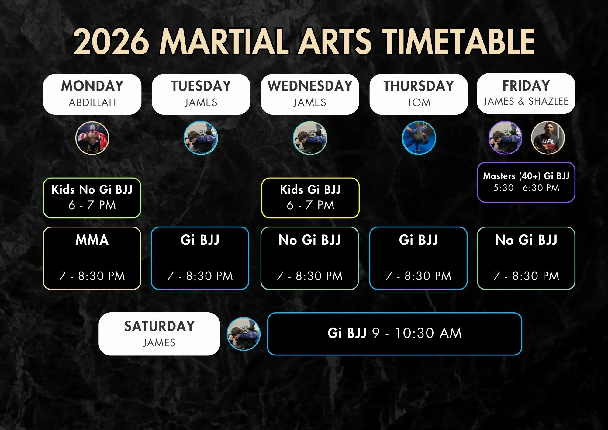 All classes run Monday to Saturday. Drop in anytime or book your free trial below.